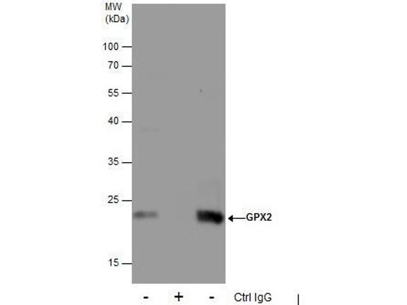 - Carrier-protein conjugated synthetic peptide encompassing a sequence within the C-terminus region of human GPX2. The exact sequence is proprietary.