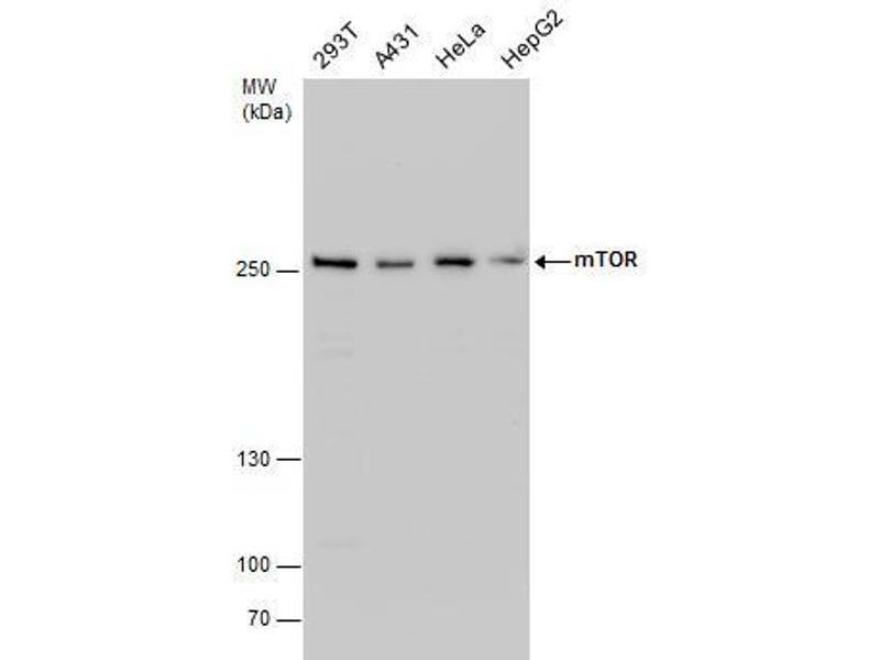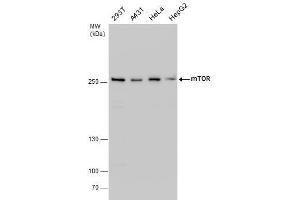 Positive Control: 293T , A431 , HeLa , HepG2 , mouse brain , *Flag-human mTOR transfected 293T