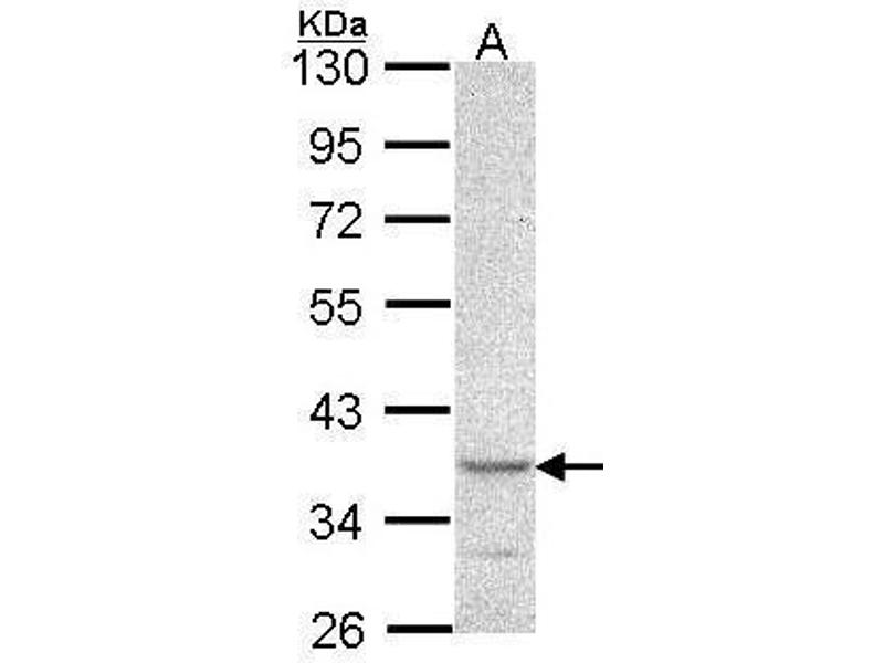 - Carrier-protein conjugated synthetic peptide encompassing a sequence within the N-terminus region of human PSCDBP. The exact sequence is proprietary.
