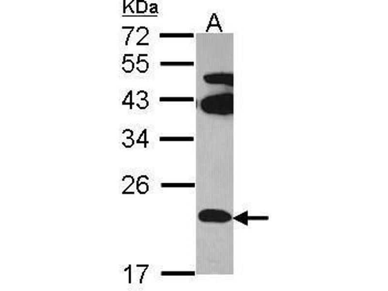 - Carrier-protein conjugated synthetic peptide encompassing a sequence within the center region of human FAM18B. The exact sequence is proprietary.