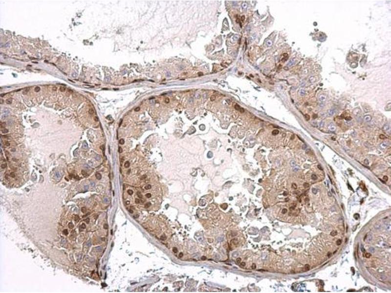 - Carrier-protein conjugated synthetic peptide encompassing a sequence within the N-terminus region of human Androgen Receptor. The exact sequence is proprietary.