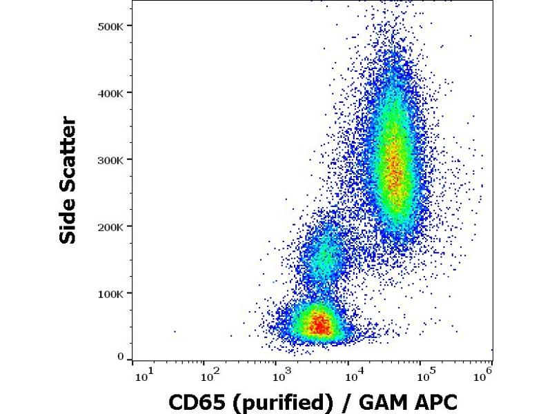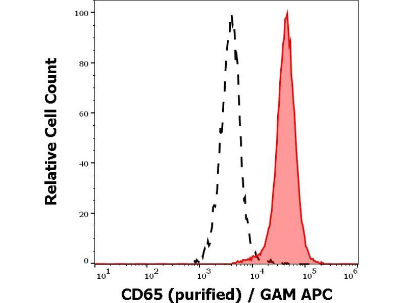 The mouse monoclonal antibody VIM8 recognizes human CD65, an asialo-fucoganglioside expressed on the surface of peripheral blood granulocytes (highly) and monocytes (weakly).