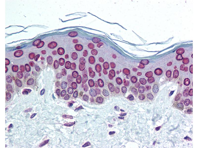 Usage: Immunohistochemistry: This antibody was validated for use in immunohistochemistry on a panel of 21 formalin-fixed, paraffin-embedded (FFPE) human tissues after heat induced antigen retrieval in pH 6.0 citrate buffer. After incubation with the primary antibody, slides were incubated with biotinylated secondary antibody, followed by alkaline phosphatase-streptavidin and chromogen. The stained slides were evaluated by a pathologist to confirm staining specificity. The optimal working concentration for this antibody was determined to be 1:50. -