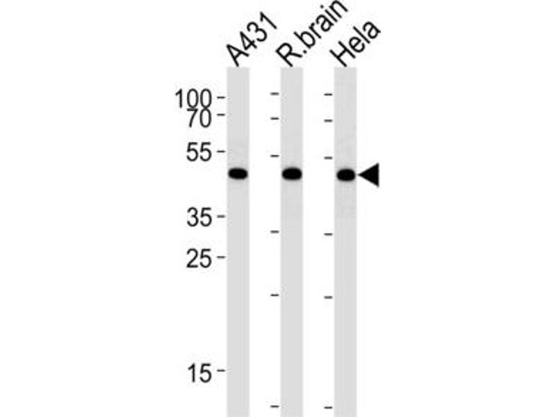 - This antibody is purified through a protein A column, followed by peptide affinity purification.