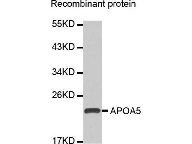 - Recombinant fusion protein containing a sequence corresponding to amino acids 207-366 of human APOA5 (NP_443200.2).
