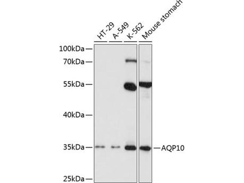 This gene encodes a member of the aquaglyceroporin family of integral membrane proteins. Members of this family function as water-permeable channels in the epithelia of organs that absorb and excrete water. This protein was shown to function as a water-selective channel, and could also permeate neutral solutes such as glycerol and urea.,AQP10,AQPA_HUMAN,Cancer,Signal Transduction,Endocrine & Metabolism,AQP10
