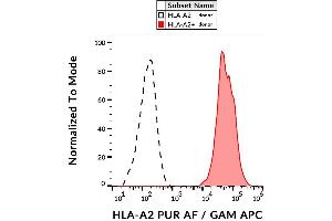 HLA-A2 (44 kDa) is the most frequent HLA-A allele in human ethnic populations. HLA-A, together with HLA-B and HLA-C, represent human HLA class I major histocompatibility (MHC) antigens. These intrinsic membrane glycoproteins are expressed on nucleated cells and noncovalently associate with an invariant beta2 microglobulin. They carry foreign determinants important for immune recognition by cytotoxic T cells, thus important for anti-viral and anti-tumour defence.