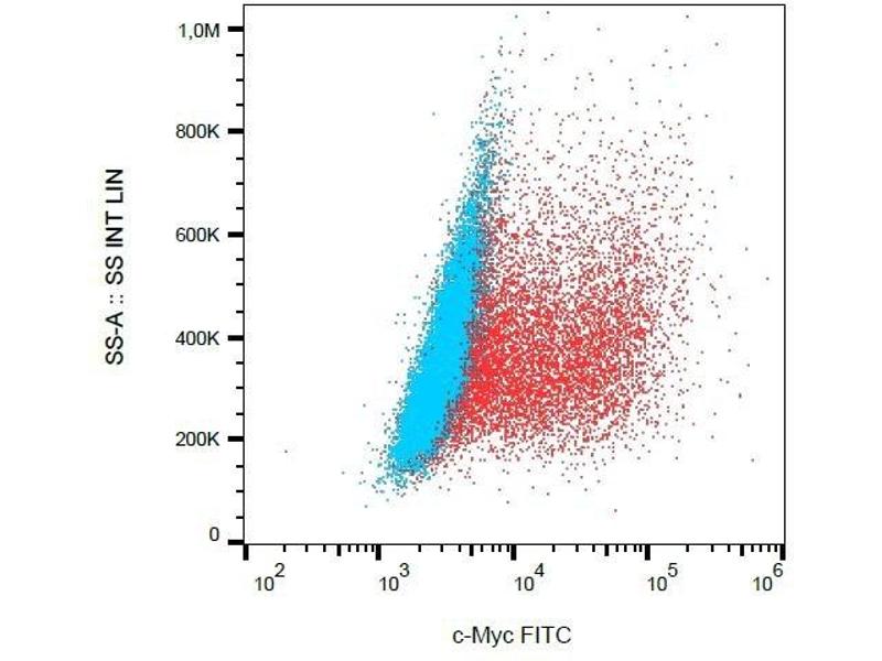 MYC proto-oncogene,The c-myc gene (8q24 on human chromosome) is the cellular homologue of the v-myc gene originally isolated from an avian myelocytomatosis virus. The c-Myc protein is a transcription factor (nuclear localization). c-Myc is commonly activated in a variety of tumor cells and plays an important role in cellular proliferation, differentiation, apoptosis and cell cycle progression. The phosphorylation of c-Myc has been investigated and previous studies have suggested a functional association between phosphorylation at Thr58/Ser62 by glycogen synthase kinase 3, cyclin-dependent kinase, ERK2 and C-Jun N-terminal Kinase (JNK) in cell proliferation and cell cycle regulation. In normal cells the expression of c-Myc is tightly regulated but in human cancers c-Myc is frequently deregulated. c-Myc is also essential for tumor cell development in vasculogenesis and angiogenesis that distribute blood throughout the cells.,bHLH, MRTL, MYCC