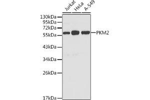 This gene encodes a protein involved in glycolysis. The encoded protein is a pyruvate kinase that catalyzes the transfer of a phosphoryl group from phosphoenolpyruvate to ADP, generating ATP and pyruvate. This protein has been shown to interact with thyroid hormone and may mediate cellular metabolic effects induced by thyroid hormones. This protein has been found to bind Opa protein, a bacterial outer membrane protein involved in gonococcal adherence to and invasion of human cells, suggesting a role of this protein in bacterial pathogenesis. Several alternatively spliced transcript variants encoding a few distinct isoforms have been reported.,CTHBP,HEL-S-30,OIP3,PK3,PKM2,TCB,THBP1,PKM,Epigenetics & Nuclear Signaling,RNA Binding,Cancer,Tumor biomarkers,Signal Transduction,Endocrine & Metabolism,Carbohydrate metabolism,Warburg Effect,PKM