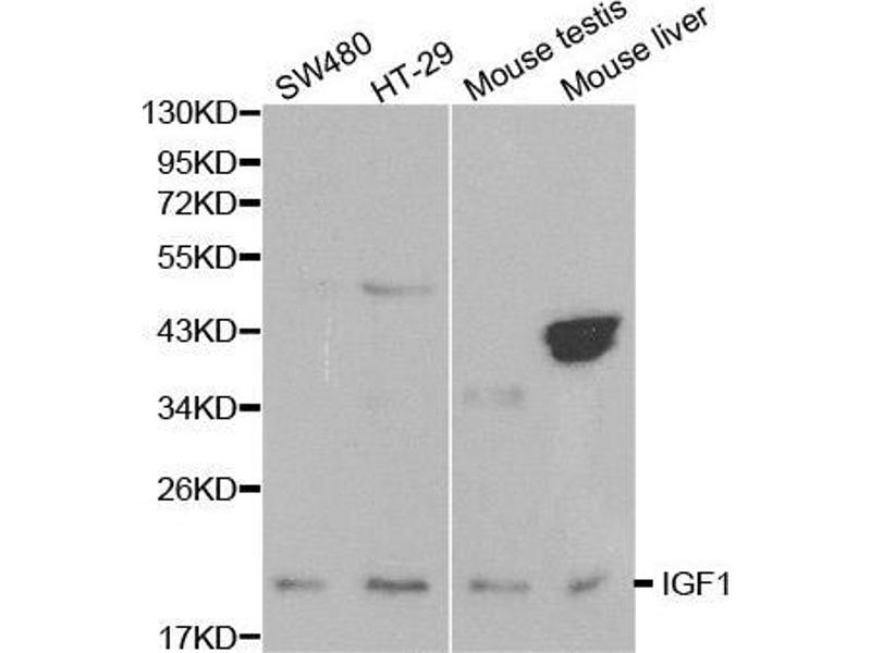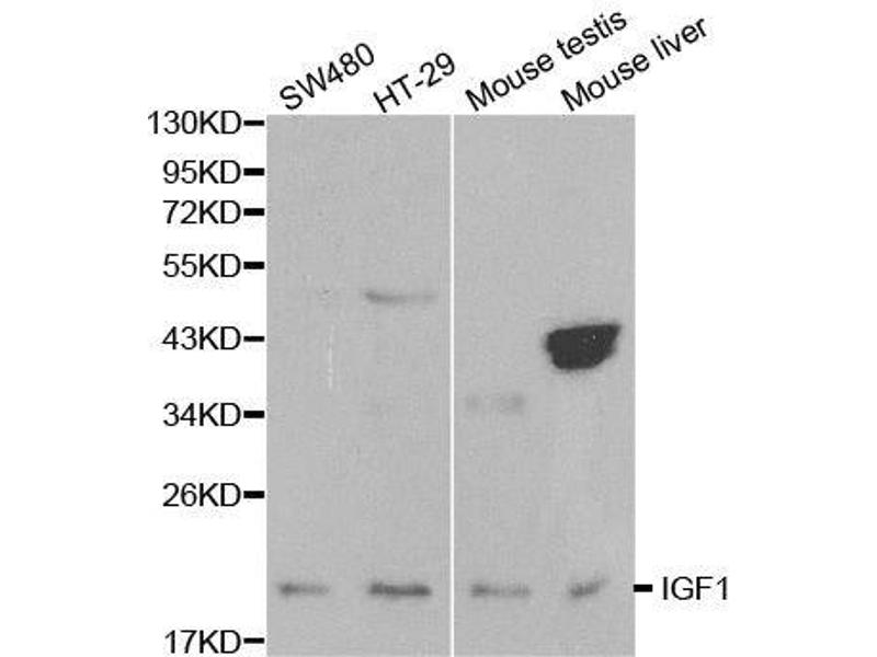 - A synthetic peptide corresponding to a sequence within amino acids 90 to the C-terminus of human IGF1 (NP_000609.1).