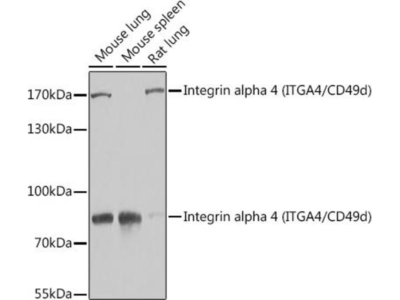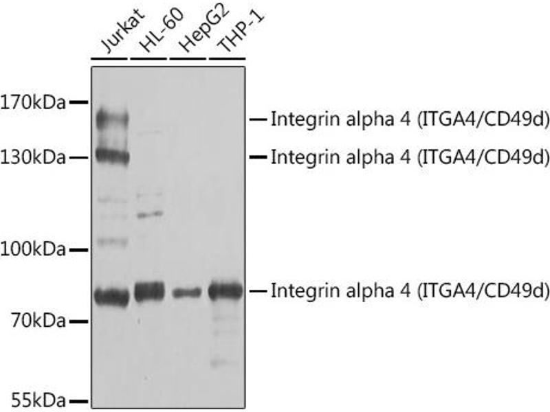 The gene encodes a member of the integrin alpha chain family of proteins. Integrins are heterodimeric integral membrane proteins composed of an alpha chain and a beta chain that function in cell surface adhesion and signaling. The encoded preproprotein is proteolytically processed to generate light and heavy chains that comprise the alpha 4 subunit. This subunit associates with a beta 1 or beta 7 subunit to form an integrin that may play a role in cell motility and migration. This integrin is a therapeutic target for the treatment of multiple sclerosis, Crohn's disease and inflammatory bowel disease. Alternative splicing results in multiple transcript variants.,ITGA4,CD49D,IA4,Signal Transduction,G protein signaling,G2/M DNA Damage Checkpoint,PI3K-Akt Signaling Pathway,MAPK-Erk Signaling Pathway,Cell Biology & Developmental Biology,Cell Adhesion,Cytoskeleton,Immunology & Inflammation,CD markers,Stem Cells,Neural Stem Cells,ITGA4