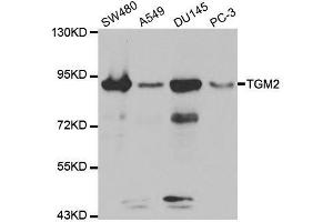 Transglutaminases are enzymes that catalyze the crosslinking of proteins by epsilon-gamma glutamyl lysine isopeptide bonds. While the primary structure of transglutaminases is not conserved, they all have the same amino acid sequence at their active sites and their activity is calcium-dependent. The protein encoded by this gene acts as a monomer, is induced by retinoic acid, and appears to be involved in apoptosis. Finally, the encoded protein is the autoantigen implicated in celiac disease. Two transcript variants encoding different isoforms have been found for this gene.,TGM2,TG(C),TGC,Epigenetics & Nuclear Signaling,Cancer,Signal Transduction,Cell Biology & Developmental Biology,Apoptosis,Endocrine & Metabolism,Amino acid metabolism,Immunology & Inflammation,Neuroscience,Calcium Signaling,Neurodegenerative Diseases,TGM2