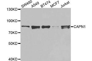 The calpains, calcium-activated neutral proteases, are nonlysosomal, intracellular cysteine proteases. The mammalian calpains include ubiquitous, stomach-specific, and muscle-specific proteins. The ubiquitous enzymes consist of heterodimers with distinct large, catalytic subunits associated with a common small, regulatory subunit. This gene encodes the large subunit of the ubiquitous enzyme, calpain 1. Several transcript variants encoding two different isoforms have been found for this gene.,CAPN1,CANP,CANP1,CANPL1,SPG76,muCANP,muCL,calpain 1,Signal Transduction,Cell Biology & Developmental Biology,Apoptosis,Ubiquitin,Immunology & Inflammation,T Cell Receptor Signaling Pathway,Neuroscience,Calcium Signaling,Neurodegenerative Diseases,Amyloid Plaque and Neurofibrillary Tangle Formation in Alzheimer's Disease,CAPN1