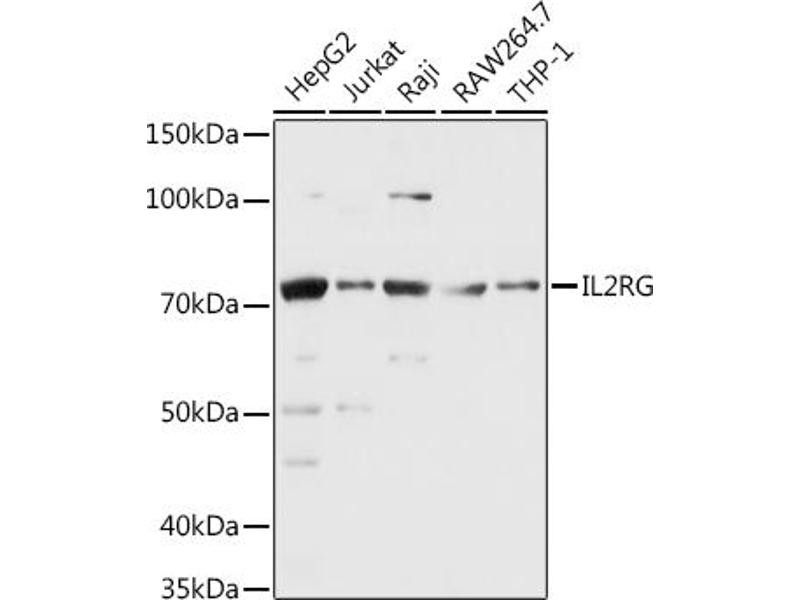 The protein encoded by this gene is an important signaling component of many interleukin receptors, including those of interleukin -2, -4, -7 and -21, and is thus referred to as the common gamma chain. Mutations in this gene cause X-linked severe combined immunodeficiency (XSCID), as well as X-linked combined immunodeficiency (XCID), a less severe immunodeficiency disorder.,IL2RG,CD132,CIDX,IL-2RG,IMD4,P64,SCIDX,SCIDX1,Cancer,Tumor immunology,Immunology & Inflammation,CD markers,Cytokines,Interleukins,Cell Intrinsic Innate Immunity Signaling Pathway,IL2RG