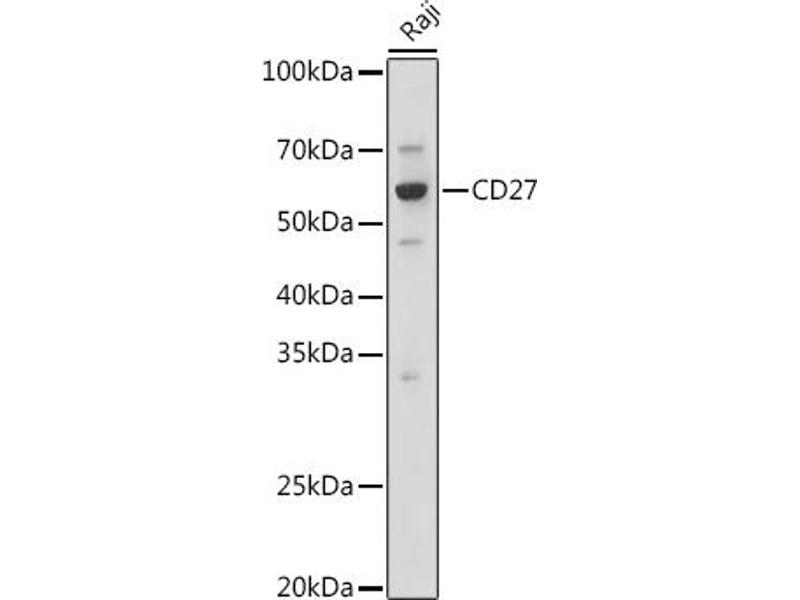 - The protein encoded by this gene is a member of the TNF-receptor superfamily. This receptor is required for generation and long-term maintenance of T cell immunity. It binds to ligand CD70, and plays a key role in regulating B-cell activation and immunoglobulin synthesis. This receptor transduces signals that lead to the activation of NF-kappaB and MAPK8/JNK. Adaptor proteins TRAF2 and TRAF5 have been shown to mediate the signaling process of this receptor. CD27-binding protein (SIVA), a proapoptotic protein, can bind to this receptor and is thought to play an important role in the apoptosis induced by this receptor.,CD27,S152,S152. LPFS2,T14,TNFRSF7,Tp55,S152.LPFS2,Cancer,Tumor immunology,Cell Biology & Developmental Biology,Apoptosis,Immunology & Inflammation,CD markers,Cytokines,TNF,Cell Intrinsic Innate Immunity Signaling Pathway,Stem Cells,Hematopoietic Progenitors,CD27