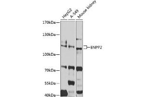 The protein encoded by this gene functions as both a phosphodiesterase, which cleaves phosphodiester bonds at the 5' end of oligonucleotides, and a phospholipase, which catalyzes production of lysophosphatidic acid (LPA) in extracellular fluids. LPA evokes growth factor-like responses including stimulation of cell proliferation and chemotaxis. This gene product stimulates the motility of tumor cells and has angiogenic properties, and its expression is upregulated in several kinds of carcinomas. The gene product is secreted and further processed to make the biologically active form. Several alternatively spliced transcript variants encoding different isoforms have been identified.,ENPP2,ATX,ATX-X,AUTOTAXIN,LysoPLD,NPP2,PD-IALPHA,PDNP2,Cancer,Tumor biomarkers,Signal Transduction,Endocrine & Metabolism,Lipid Metabolism,Lipases,Neuroscience,Neurodegenerative Diseases,Cardiovascular,Angiogenesis,Heart,Lipids,Cardiovascular diseases,Heart disease,ENPP2