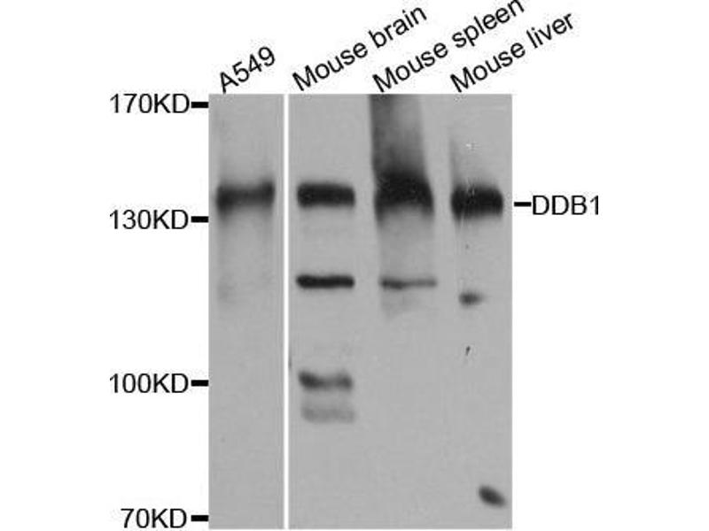 The protein encoded by this gene is the large subunit (p127) of the heterodimeric DNA damage-binding (DDB) complex while another protein (p48) forms the small subunit. This protein complex functions in nucleotide-excision repair and binds to DNA following UV damage. Defective activity of this complex causes the repair defect in patients with xeroderma pigmentosum complementation group E (XPE) - an autosomal recessive disorder characterized by photosensitivity and early onset of carcinomas. However, it remains for mutation analysis to demonstrate whether the defect in XPE patients is in this gene or the gene encoding the small subunit. In addition, Best vitelliform mascular dystrophy is mapped to the same region as this gene on 11q, but no sequence alternations of this gene are demonstrated in Best disease patients. The protein encoded by this gene also functions as an adaptor molecule for the cullin 4 (CUL4) ubiquitin E3 ligase complex by facilitating the binding of substrates to this complex and the ubiquitination of proteins.,DDB1,DDBA,UV-DDB1,XAP1,XPCE,XPE,XPE-BF,Epigenetics & Nuclear Signaling,DNA Damage & Repair,Cancer,Signal Transduction,Cell Biology & Developmental Biology,Ubiquitin,Ubiquitin-Proteasome Signaling Pathway,Endocrine & Metabolism,Carbohydrate metabolism,Neuroscience,Neurodegenerative Diseases,Amyloid Plaque and Neurofibrillary Tangle Formation in Alzheimer's Disease,DDB1