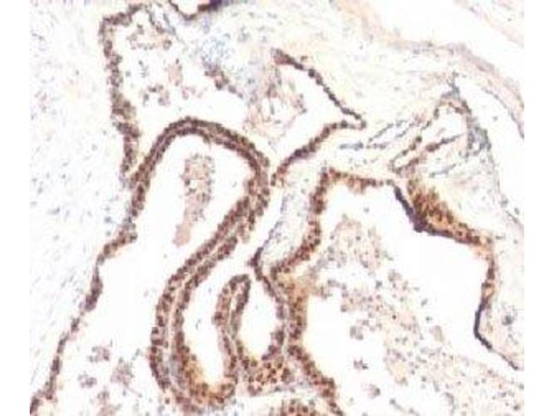 1. Staining of formalin-fixed tissues requires boiling tissue sections in 10 mM Citrate buffer, pH 6.0, for 10-20 min followed by cooling at RT for 20 min