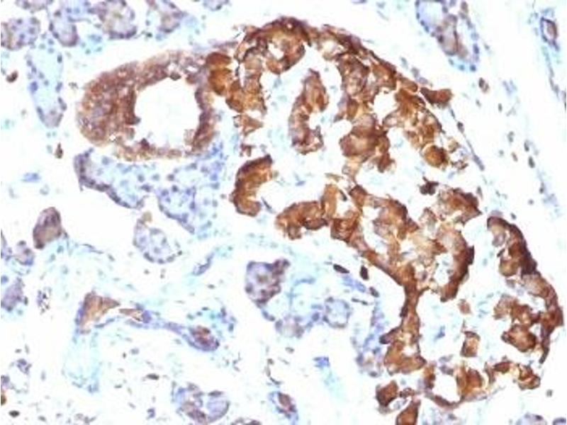 1. Staining of formalin-fixed tissues requires boiling tissue sections in 10 mM Citrate buffer, pH 6.0, for 10-20 min followed by cooling at RT for 20 min.
