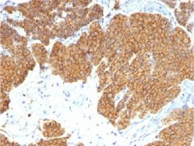 2. The prediluted format is supplied in a dropper bottle and is optimized for use in IHC. After epitope retrieval step (if required), drip mAb solution onto the tissue section and incubate at RT for 30 min.\. Flow Cytometry: 0.5-1 μg/million cells in 0.1ml,Immunofluorescence: 0.5-1 μg/mL,Immunohistochemistry (FFPE): 0.25-0.5 μg/mL for 30 min at RT (1),Prediluted format: incubate for 30 min at RT (2) -