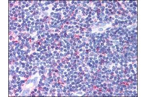 Immunohistochemistry on paraffin sections (10 μg/mL). Antigen retrieval: Steam slides in 0.01 M sodium citrate buffer, pH 6.0, at 99-100C for 20 min. Remove from heat and let stand at room temperature in buffer for 20 min. Rinse in 1xTBS with Tween (TBST) for 1 min. at room temperature.