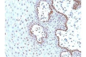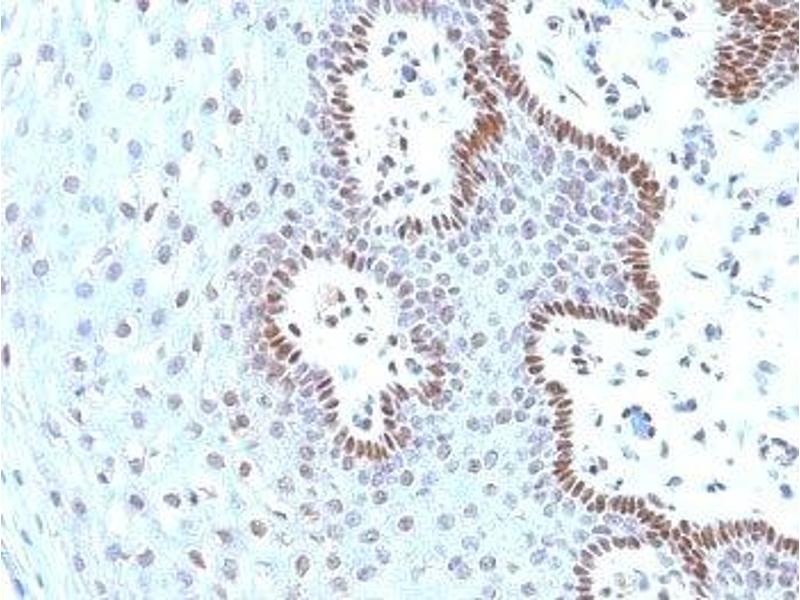 1. Staining of formalin-fixed tissues requires boiling tissue sections in 10 mM Tris with 1 mM EDTA, pH 9.0, for 10-20 min followed by cooling at RT for 20 min