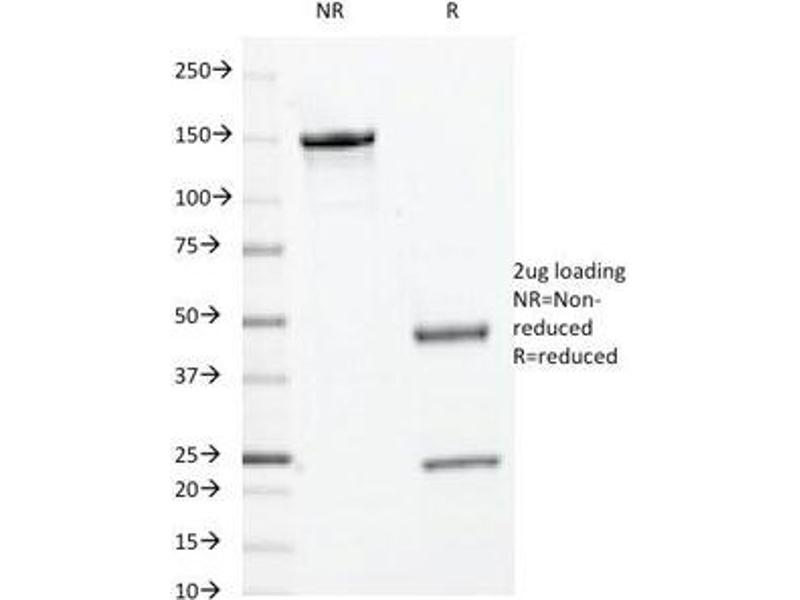 2. The prediluted format is supplied in a dropper bottle and is optimized for use in IHC. After epitope retrieval step (if required), drip mAb solution onto the tissue section and incubate at RT for 30 min.\. Western blot: 1-2 μg/mL,Flow Cytometry: 0.5-1 μg/million cells in 0.1ml,Immunofluorescence: 1-2 μg/mL,Immunohistochemistry (FFPE): 1-2 μg/mL for 30 min at RT (1),Prediluted format : incubate for 30 min at RT (2) -