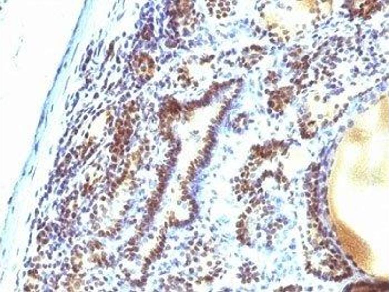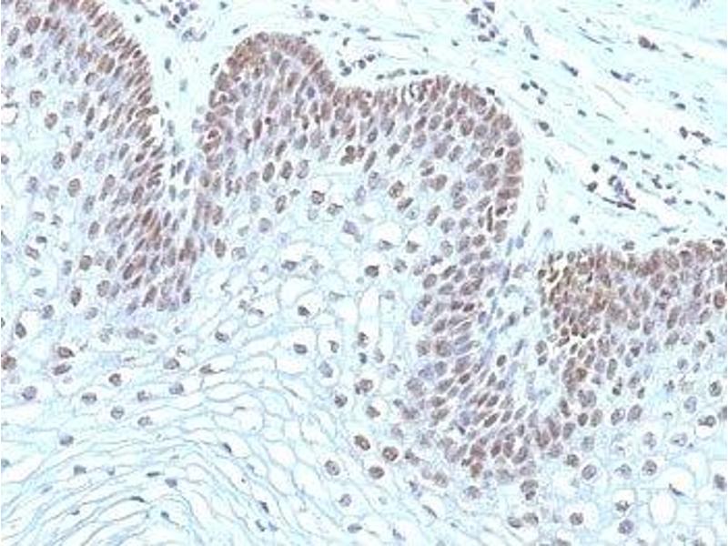 2. The prediluted format is supplied in a dropper bottle and is optimized for use in IHC. After epitope retrieval step (if required), drip mAb solution onto the tissue section and incubate at RT for 30 min.\. Flow Cytometry: 0.5-1 μg/million cells in 0.1ml,Immunofluorescence: 1-2 μg/mL,Western blot: 0.5-1 μg/mL,Immunohistochemistry (FFPE): 0.5-1 μg/mL for 30 min at RT (1),Prediluted format : incubate for 30 min at RT (2) -