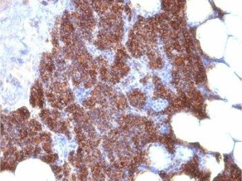2. The prediluted format is supplied in a dropper bottle and is optimized for use in IHC. After epitope retrieval step (if required), drip mAb solution onto the tissue section and incubate at RT for 30 min.\. Flow Cytometry: 0.5-1 μg/million cells in 0.1ml,Immunofluorescence: 0.5-1 μg/mL,Immunohistochemistry (FFPE): 0.5-1 μg/mL for 30 min at RT (1),Prediluted format: incubate for 30 min at RT (2) -