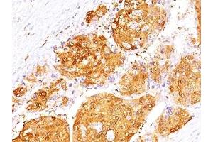 1. Staining of formalin-fixed tissues requires boiling tissue sections in 10 mM Citrate buffer, pH 6.0, for 10-20 min followed by cooling at RT for 20 min
