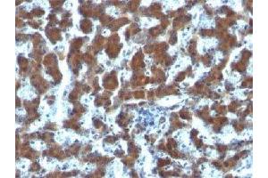 1. Staining of formalin-fixed tissues requires boiling tissue sections in 10 mM Citrate Buffer, pH 6.0, for 10-20 min followed by cooling at RT for 20 minutes