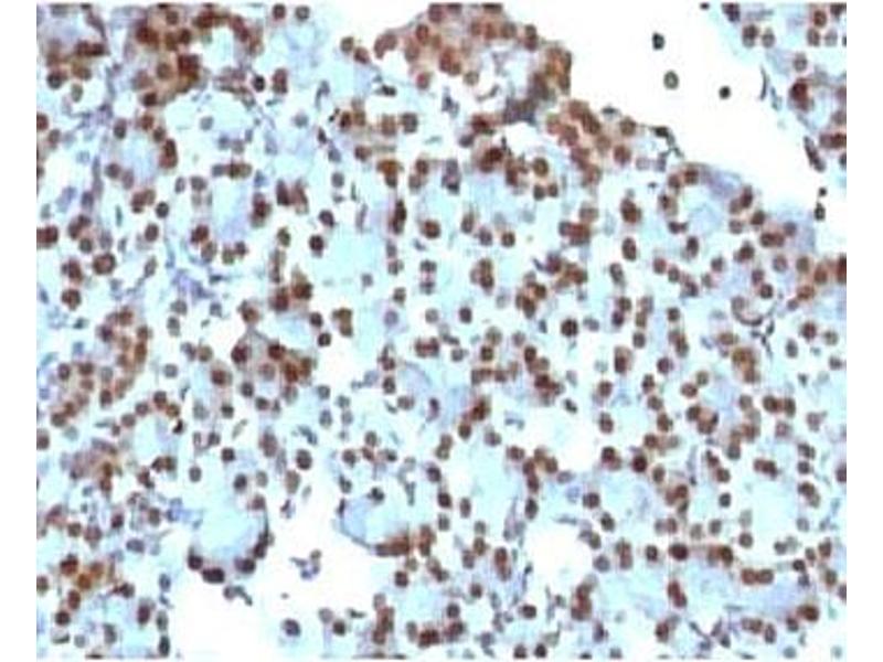 2. The prediluted format is supplied in a dropper bottle and is optimized for use in IHC. After epitope retrieval step (if required), drip mAb solution onto the tissue section and incubate at RT for 30 min.\. FACS: 0.5-1 μg/million cells,IF: 0.5-1 μg/mL,WB: 0.5-1 μg/mL,IHC (FFPE): 0.5-1 μg/mL for 30 minutes at RT (1),Prediluted format : incubate for 30 min at RT (2) -