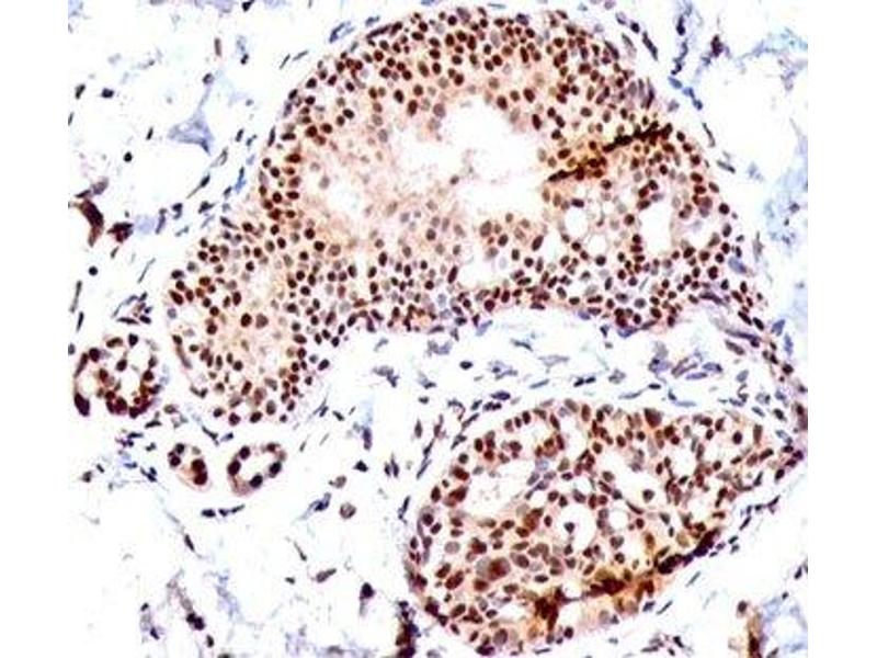 1. Staining of formalin-fixed tissues requires boiling tissue sections in 10 mM citrate buffer, pH 6.0, for 10-20 min followed by cooling at RT for 20 minutes.