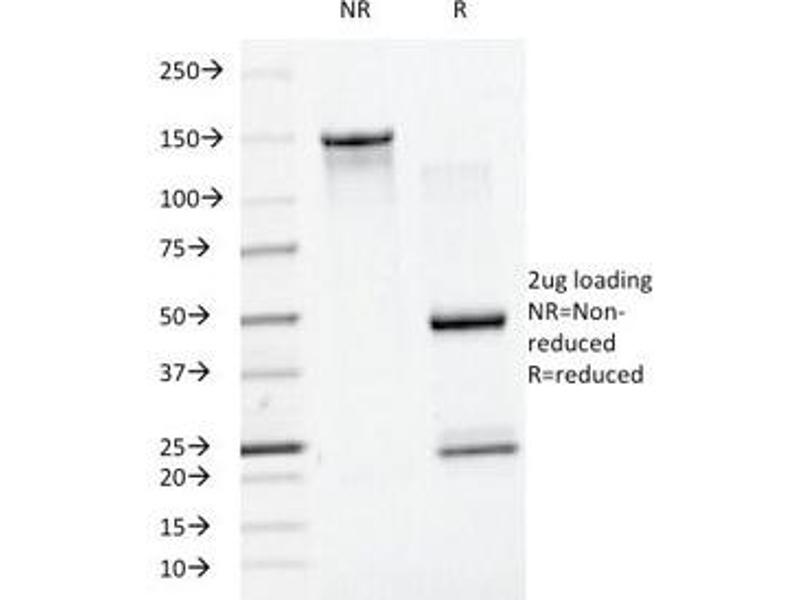2. The prediluted format is supplied in a dropper bottle and is optimized for use in IHC. After epitope retrieval step (if required), drip mAb solution onto the tissue section and incubate at RT for 30 min.\. FACS: 0.5-1 μg/million cells,IF: 0.5-1 μg/mL,WB: 0.5-1 μg/mL,IHC (FFPE): 0.5-1 μg/mL for 30 minutes at RT (1),Prediluted format : incubate for 30 min at RT (2) -