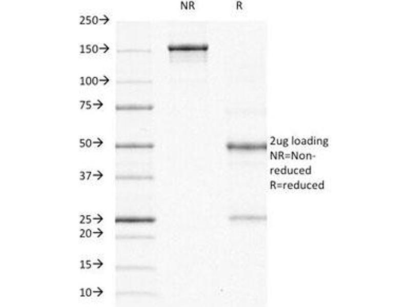 2. The prediluted format is supplied in a dropper bottle and is optimized for use in IHC. After epitope retrieval step (if required), drip mAb solution onto the tissue section and incubate at RT for 30 min.\. FACS: 0.5-1 μg/million cells,IF: 0.5-1 μg/mL,WB: 0.5-1 μg/mL,IHC (FFPE): 0.5-1 μg/mL for 30 minutes at RT (1),Prediluted format : incubate for 30 min at RT (2) -