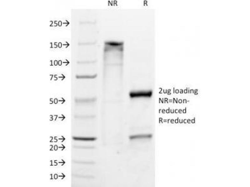 2. The prediluted format is supplied in a dropper bottle and is optimized for use in IHC. After epitope retrieval step (if required), drip mAb solution onto the tissue section and incubate at RT for 30 min.\. ELISA: order BSA-free format for coating,FACS: 0.5-1 μg/million cells,IF: 1-2 μg/mL,WB: 0.5-1 μg/mL,IP: 0.5-1 μg/500 μg protein lysate,IHC (FFPE): 0.5-1 μg/mL for 30 minutes at RT (1),Prediluted format : incubate for 30 min at RT (2) -