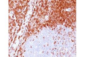 2. The prediluted format is supplied in a dropper bottle and is optimized for use in IHC. After epitope retrieval step (if required), drip mAb solution onto the tissue section and incubate at RT for 30 min.\. ELISA: order BSA-free format for coating,FACS: 0.5-1 μg/million cells,IF: 1-2 μg/mL,WB: 0.5-1 μg/mL,IP: 1-2 μg/0.5 mg lysate,IHC (FFPE): 0.5-1 μg/mL for 30 minutes at RT (1),Prediluted format : incubate for 30 min at RT (2) -