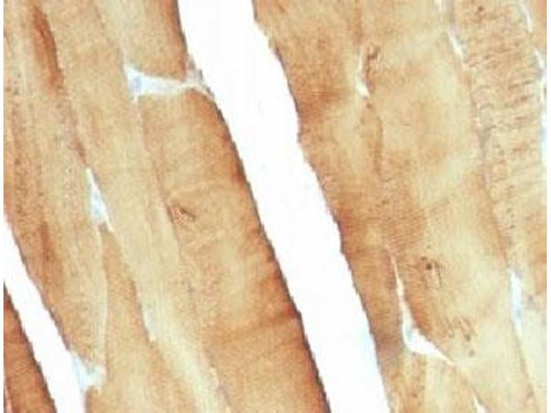 An amino acid sequence common among human muscle actins was used as the immunogen for the pan Muscle Actin antibody.