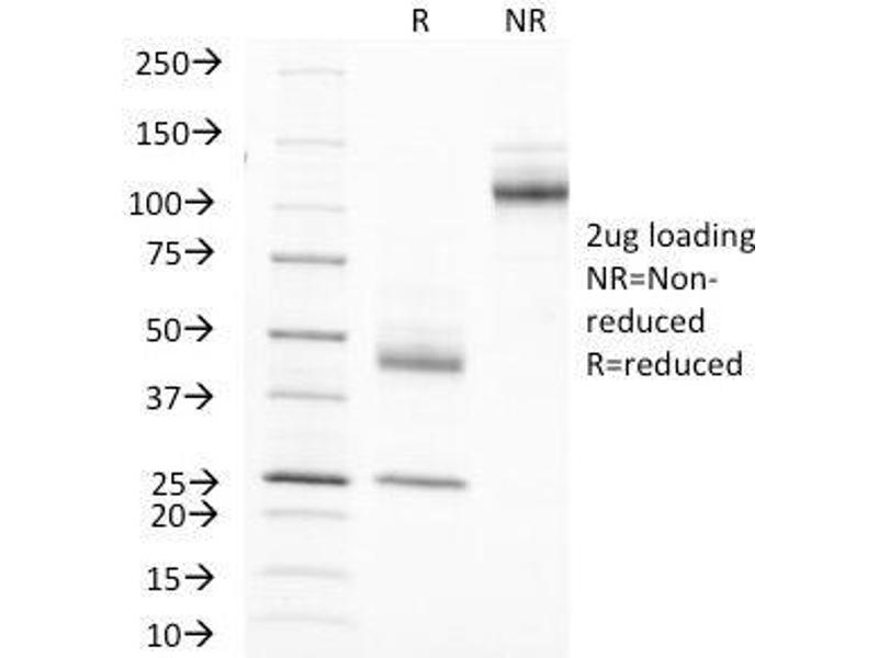 2. The prediluted format is supplied in a dropper bottle and is optimized for use in IHC. After epitope retrieval step (if required), drip mAb solution onto the tissue section and incubate at RT for 30 min.\. FACS: 0.5-1 μg/million cells,Immunofluorescence: 0.5-1 μg/mL,IHC (FFPE): 0.5-1 μg/mL for 30 minutes at RT (1),Prediluted format : incubate for 30 min at RT (2) -