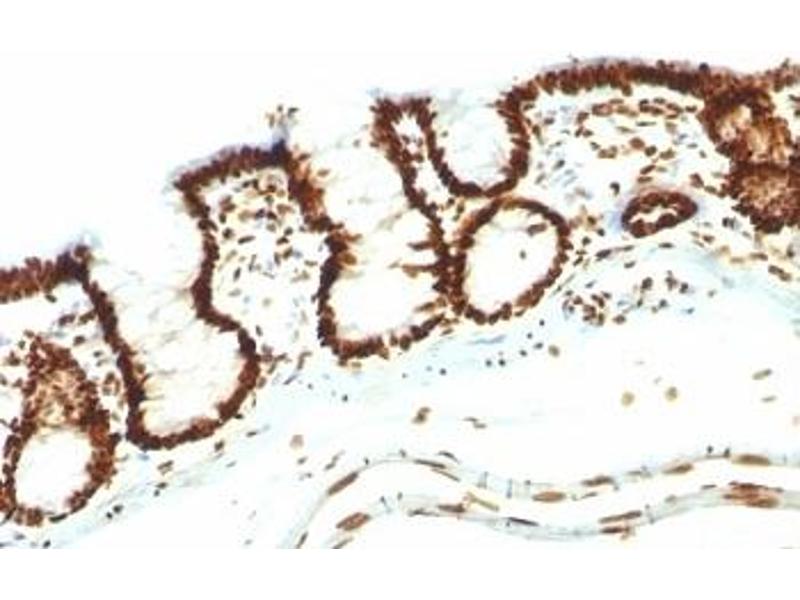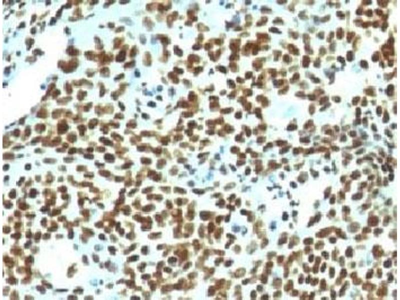 2. The prediluted format is supplied in a dropper bottle and is optimized for use in IHC. After epitope retrieval step (if required), drip mAb solution onto the tissue section and incubate at RT for 30 min.\. Flow Cytometry: 0.5-1 μg/million cells in 0.1ml,Immunofluorescence: 0.5-1 μg/mL,Immunocytochemistry (Acetone-fixed): 0.25-0.5 μg/mL for 30 min at RT,Immunohistochemistry (FFPE): 0.25-0.5 μg/mL for 30 min at RT (1),Prediluted format: incubate for 30 min at RT (2) -