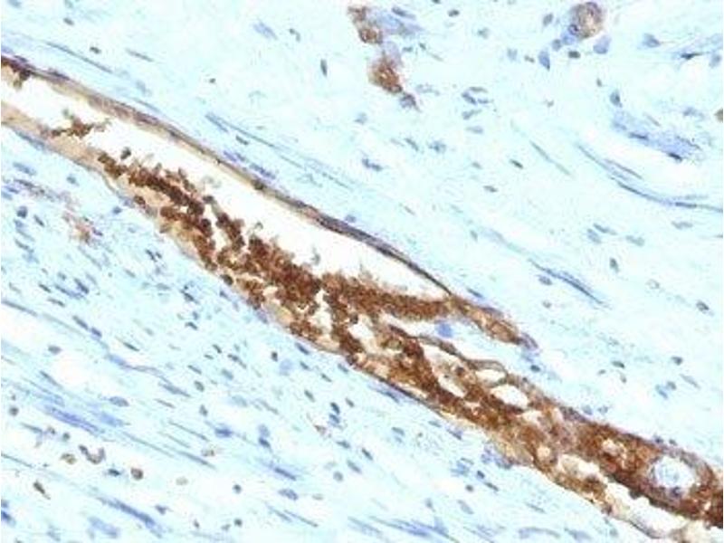 2. The prediluted format is supplied in a dropper bottle and is optimized for use in IHC. After epitope retrieval step (if required), drip mAb solution onto the tissue section and incubate at RT for 30 min.\. Immunofluorescence: 0.5-1 μg/mL,Immunohistochemistry (FFPE): 0.5-1 μg/mL for 30 min at RT (1),Prediluted format : incubate for 30 min at RT (2) -
