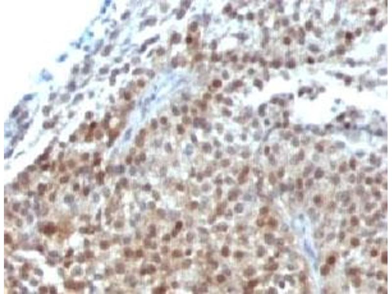 2. The prediluted format is supplied in a dropper bottle and is optimized for use in IHC. After epitope retrieval step (if required), drip mAb solution onto the tissue section and incubate at RT for 30 min.\. Flow Cytometry: 0.5-1 μg/million cells in 0.1ml,Immunofluorescence: 1-2 μg/mL,Immunohistochemistry (FFPE): 2-4 μg/mL for 30 min at RT (1),Prediluted format : incubate for 30 min at RT (2) -
