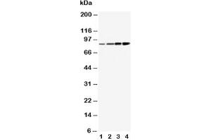 Titration of the PI3K antibody may be required due to differences in protocols and secondary/substrate sensitivity.\. Western blot: 0.5-1 μg/mL