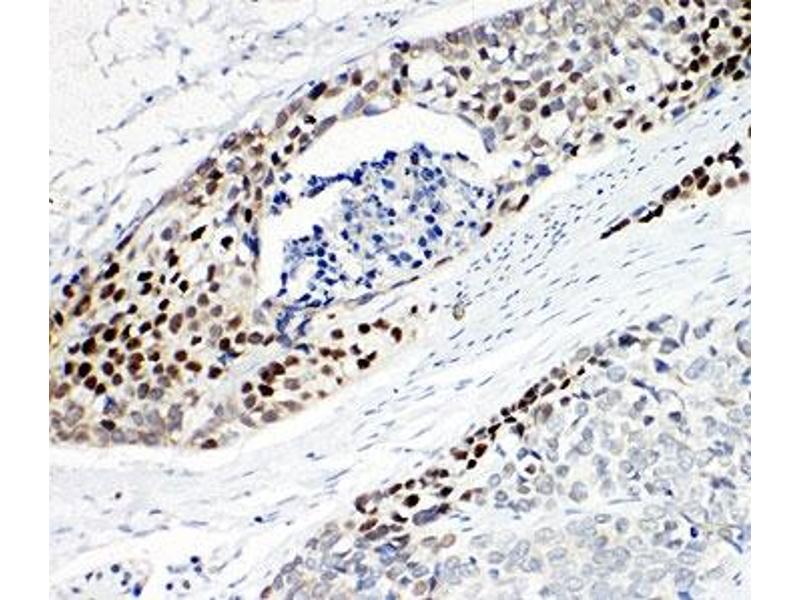 The stated application concentrations are suggested starting points. Titration of the p63 antibody may be required due to differences in protocols and secondary/substrate sensitivity.\. Western blot: 0.5-1 μg/mL,IHC (Paraffin): 0.5-1 μg/mL,Immunocytochemistry: 0.5-1 μg/mL