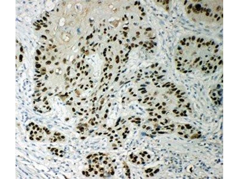 Tumor Protein p63, also known as KET, is a protein that in humans is encoded by the TP63 gene. Yang et al.(1998) described the cloning of tumor protein, which shows strong homology to the tumor suppressor p53 and the p53-related protein p73. By fluorescence in situ hybridization, Yang et al.(1998) localized the human gene to chromosome 3q27-q29. Hibi et al.(2000) stated that p53 homologs known variously as p40, p51, p63, and p73L (Trink etal., 1998, Yang etal., 1998, Osada etal., 1998, Senoo etal., 1998) are isoforms of the same gene, which were then referred to as AIS for 'amplified in squamous cell carcinoma.'