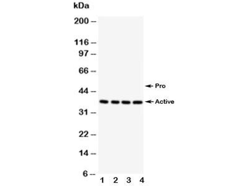The stated application concentrations are suggested starting points. Titration of the Caspase-12 antibody may be required due to differences in protocols and secondary/substrate sensitivity.\. Western blot: 0.5-1 μg/mL,IHC (Paraffin): 0.5-1 μg/mL