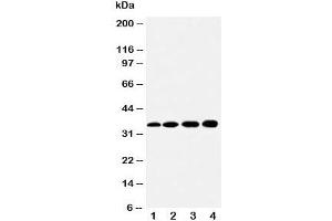 The stated application concentrations are suggested starting amounts. Titration of the HSD17B1 antibody may be required due to differences in protocols and secondary/substrate sensitivity.\. Western blot: 0.5-1 μg/mL,IHC (Paraffin): 0.5-1 μg/mL,Immunocytochemistry: 0.5-1 μg/mL