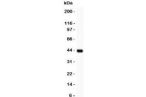 The stated application concentrations are suggested starting amounts. Titration of the MAC-1 antibody may be required due to differences in protocols and secondary/substrate sensitivity.\. Western blot: 0.5-1 μg/mL,IHC (Paraffin): 0.5-1 μg/mL