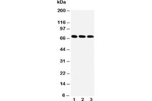 The stated application concentrations are suggested starting points. Titration of the IRAKM antibody may be required due to differences in protocols and secondary/substrate sensitivity.\. Western blot: 0.5-1 μg/mL