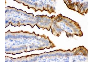 Tissue Specificity: Specifically expressed in epithelial cells. Major component of microvilli of intestinal epithelial cells and kidney proximal tubule cells. Expressed in canalicular microvilli of hepatocytes (at protein level). .